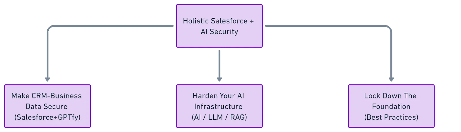 This plain English article provides a set of best practices for securely implementing GPTfy with Salesforce CRM. It’s a comprehensive and integrated approach to securing AI systems and their associated data, models, and infrastructure.