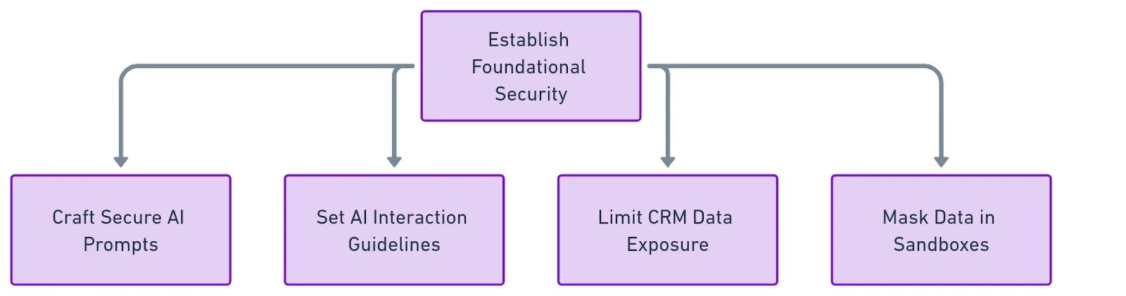 Secure all aspects, from writing secure prompts and applying AI interaction guidelines to limiting CRM data exposure and masking data within AI sandboxes. Every detail matters!