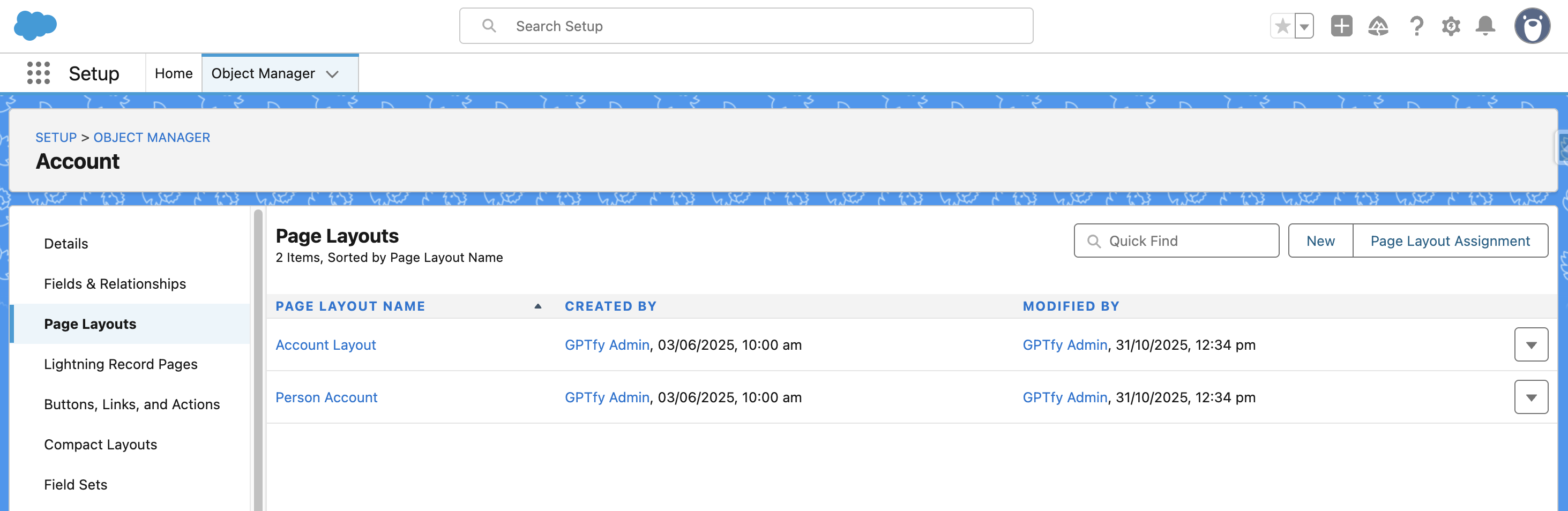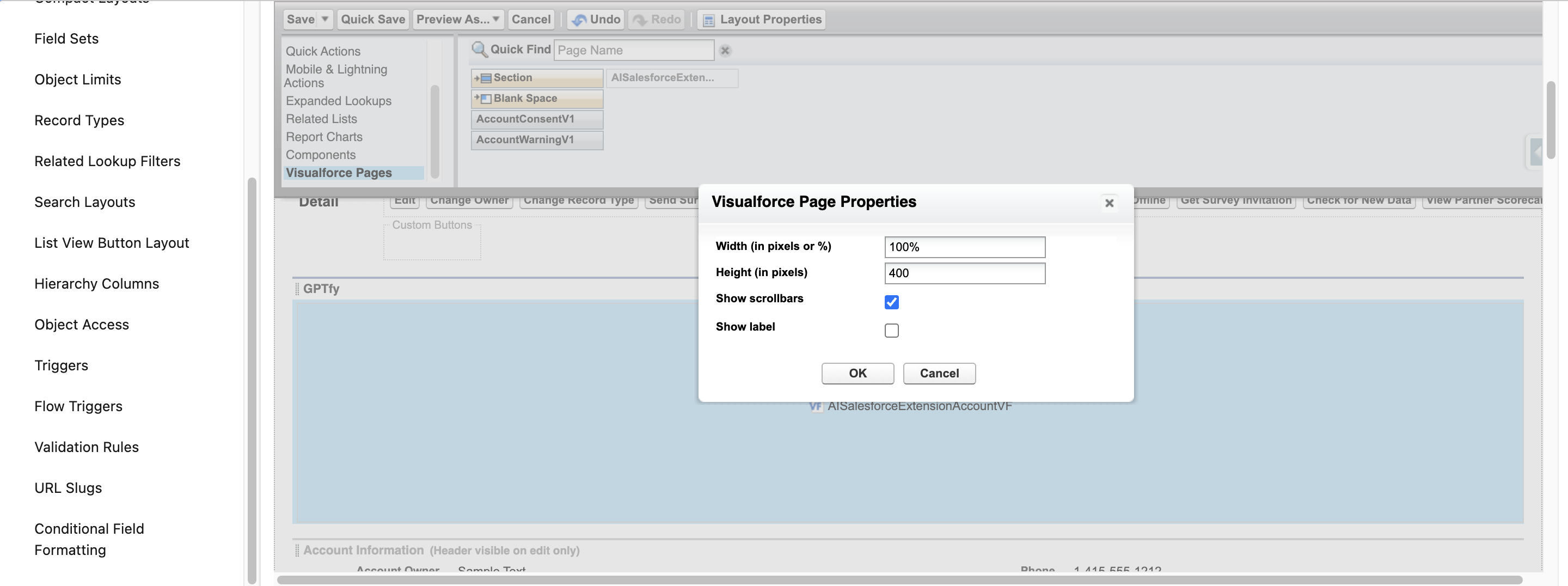 Step 4: Add the ‘AISalesforceExtensionAccountVF’ Visualforce Page to the Account Layout