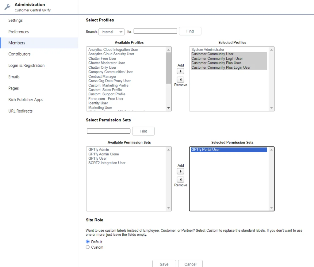 - Add the GPTfy Portal User permission set, assign it, and click Save.