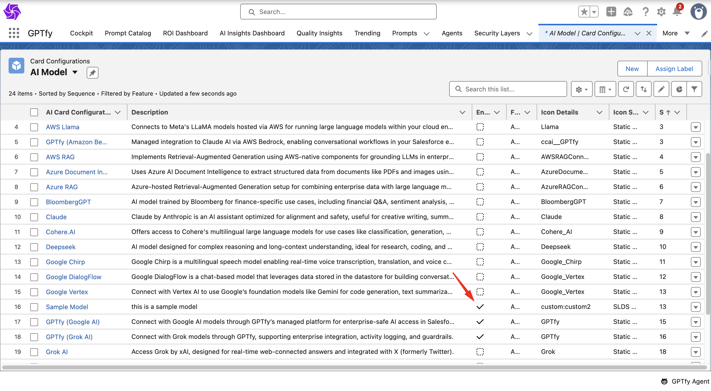 - The model will be marked as enabled in GPTfy Card Configurations.
