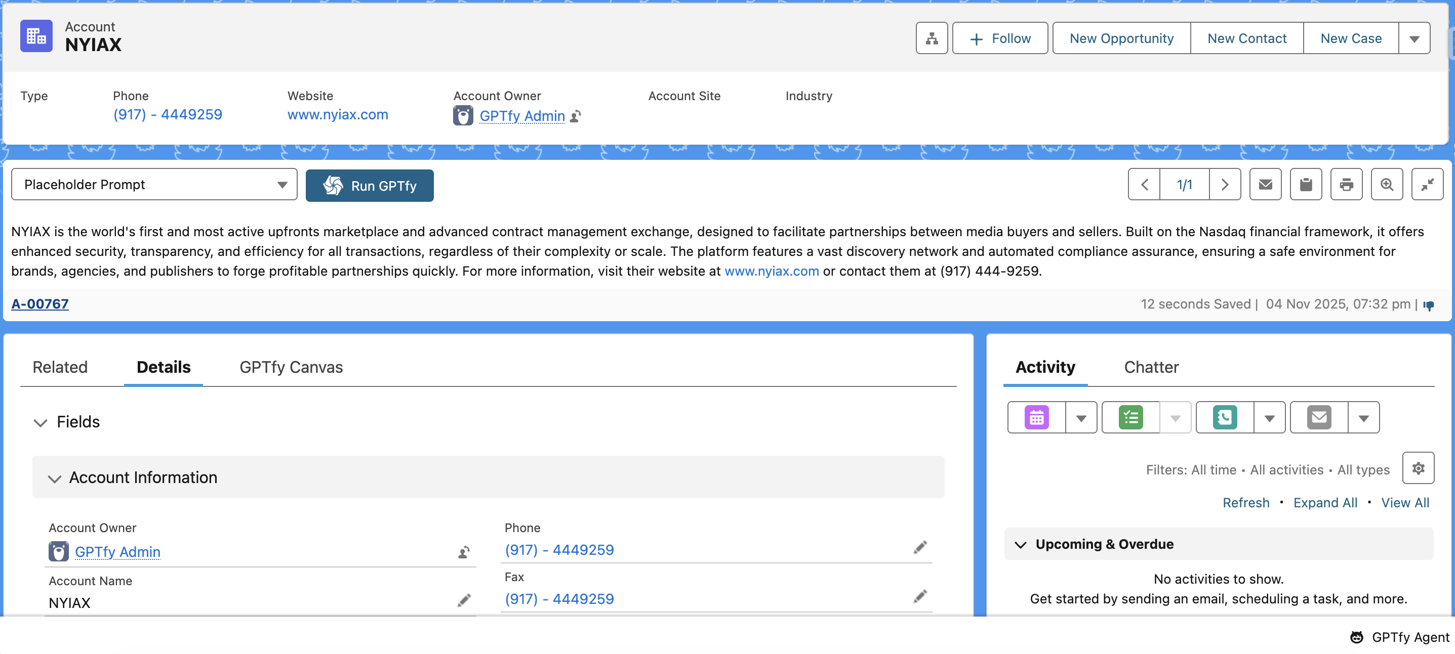 Bring richer insights to your AI workflows by connecting external APIs like Explorium to GPTfy. This guide walks you through how to set up and use a custom API Data Source that enriches your Salesforce records with firmographic data based on the website field—and makes it available for AI processing in GPTfy.