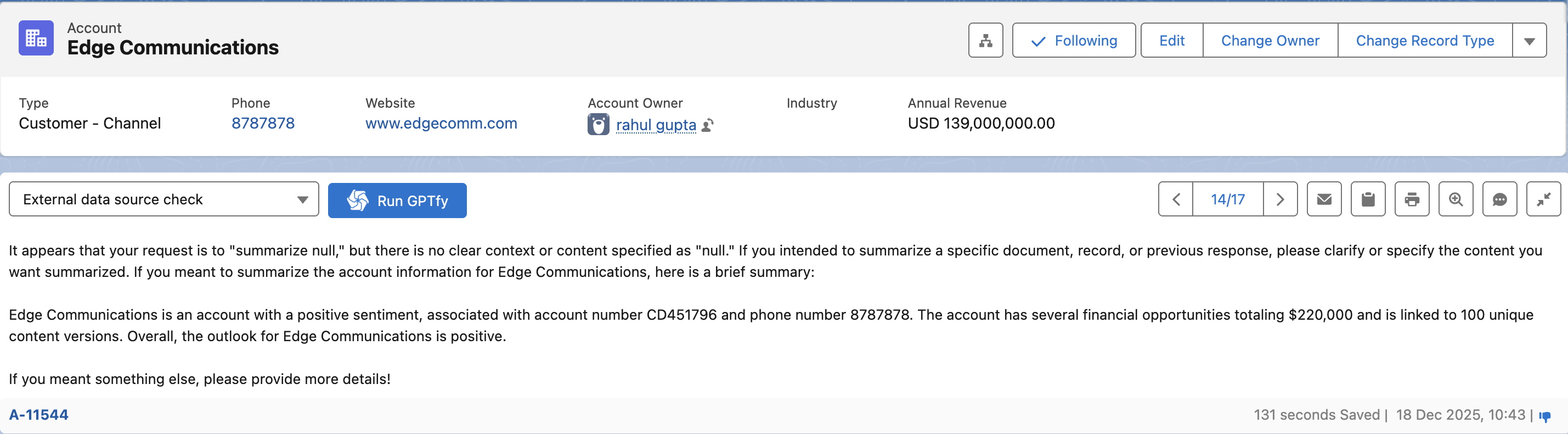 Your Salesforce data only tells part of the story. With GPTfy’s API Data Source capability, you can: