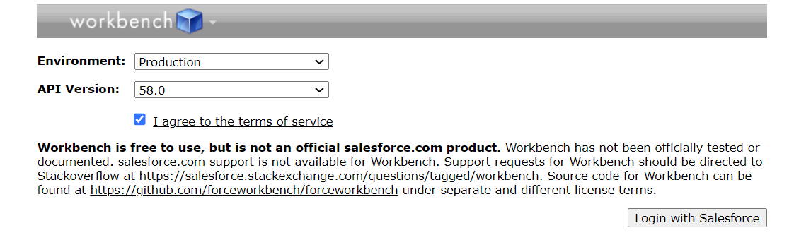 To proceed with the invocation, access any REST tool, such as Salesforce Developer Workbench or Postman. (This example uses Salesforce Developer Workbench.)