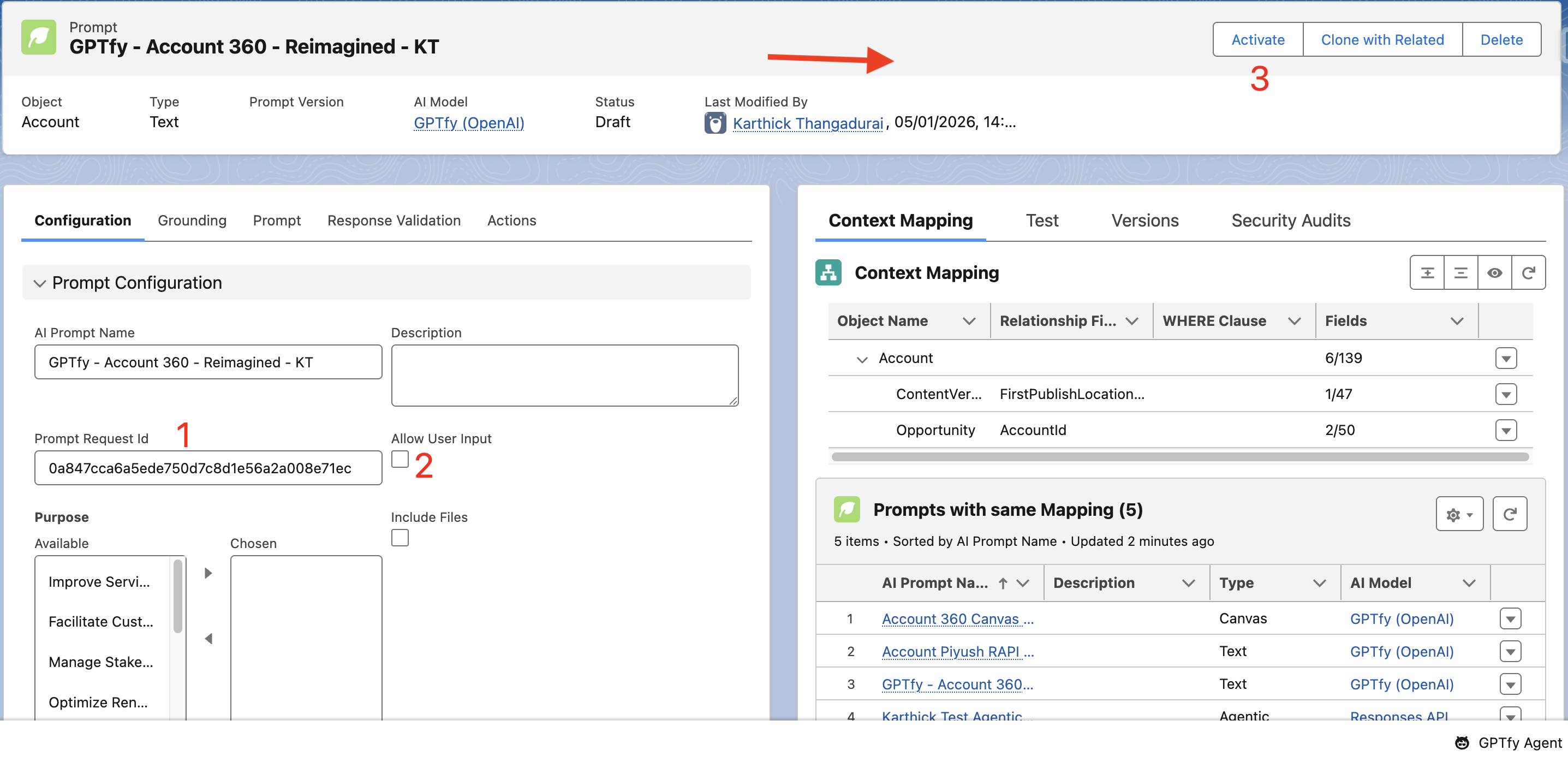 - Activate the Prompt by clicking on the Activate button (3).